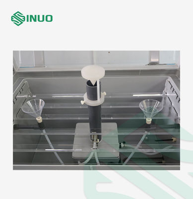 3.2 تستخدم فوهة غير بلورية وجهاز رذاذ محاذية. بعد أن تنتشر من خلال المحاذية ، تسقط بشكل متساوٍ وحر في غرفة الاختبار ،بحيث تساقط رشاش الملح يصل إلى القيمة المحددة.